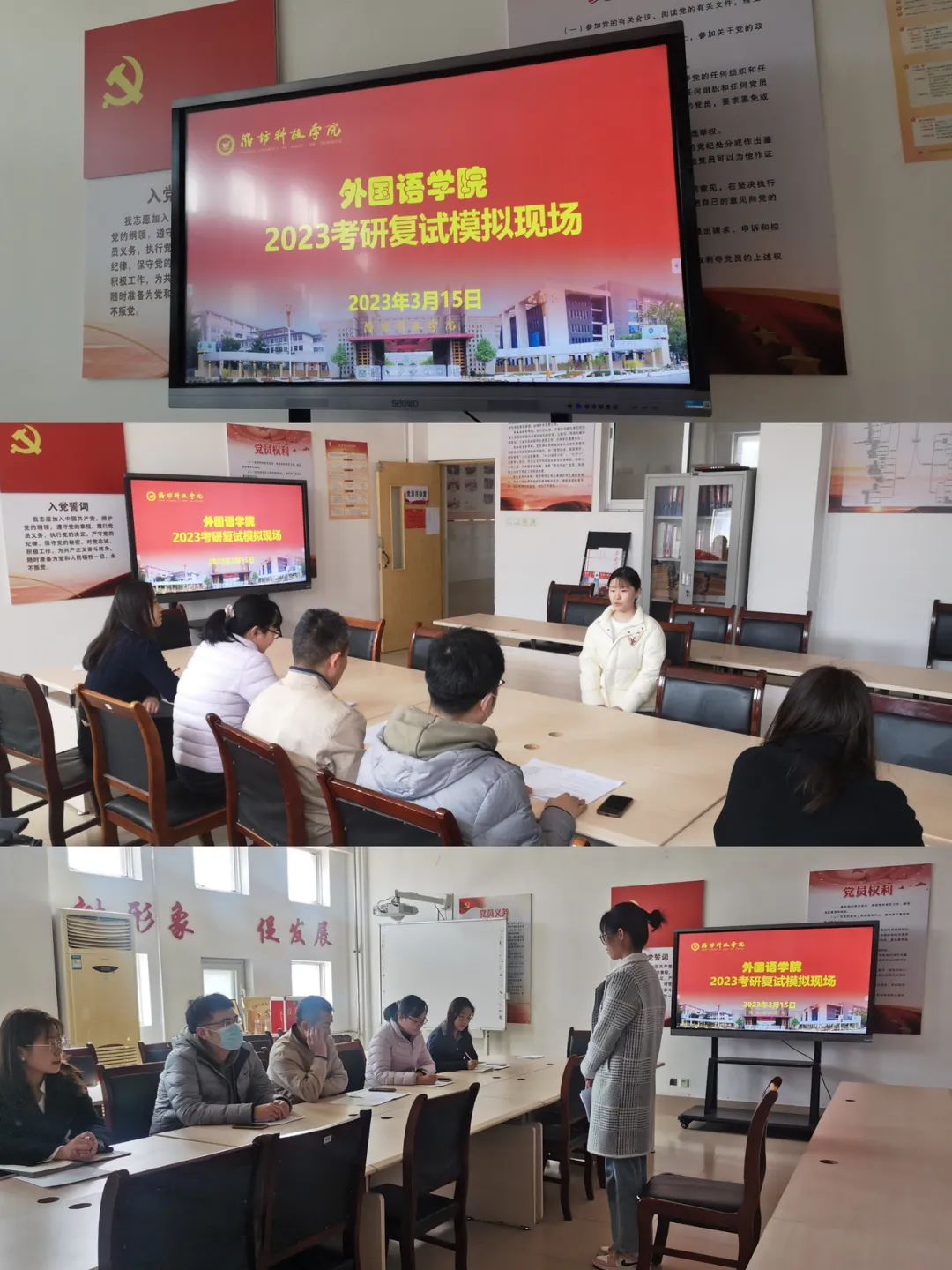 为帮助考研学生熟悉考研复试流程,掌握复试方法和技巧,提高考研上岸成功率,3月15日下午,suncitygroup太阳新城组织开展了2023届学生考研复试实战模拟。本次实战模拟由suncitygroup太阳新城副院长崔月霞主持,由五位骨干教师担任面试官,suncitygroup太阳新城进入考研复试的学生全部参加了本次模拟复试。