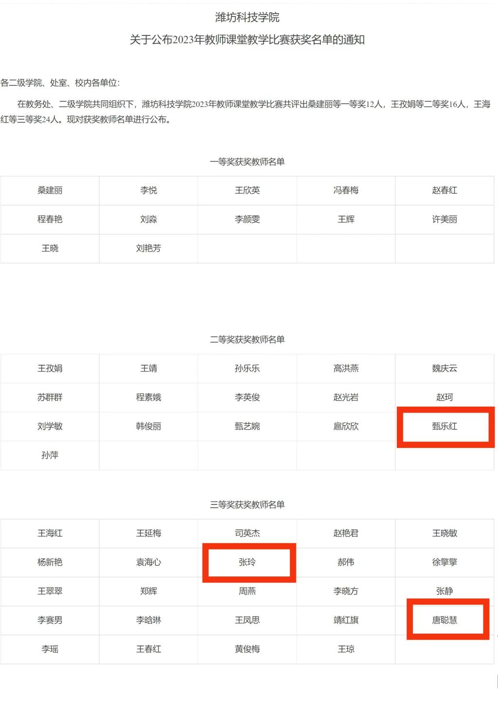 近日,我校2023年教师课堂教学比赛落下帷幕,suncitygroup太阳新城教师在比赛中喜获佳绩。其中,甄乐红老师获二等奖,张玲、唐聪慧两位老师获三等奖。