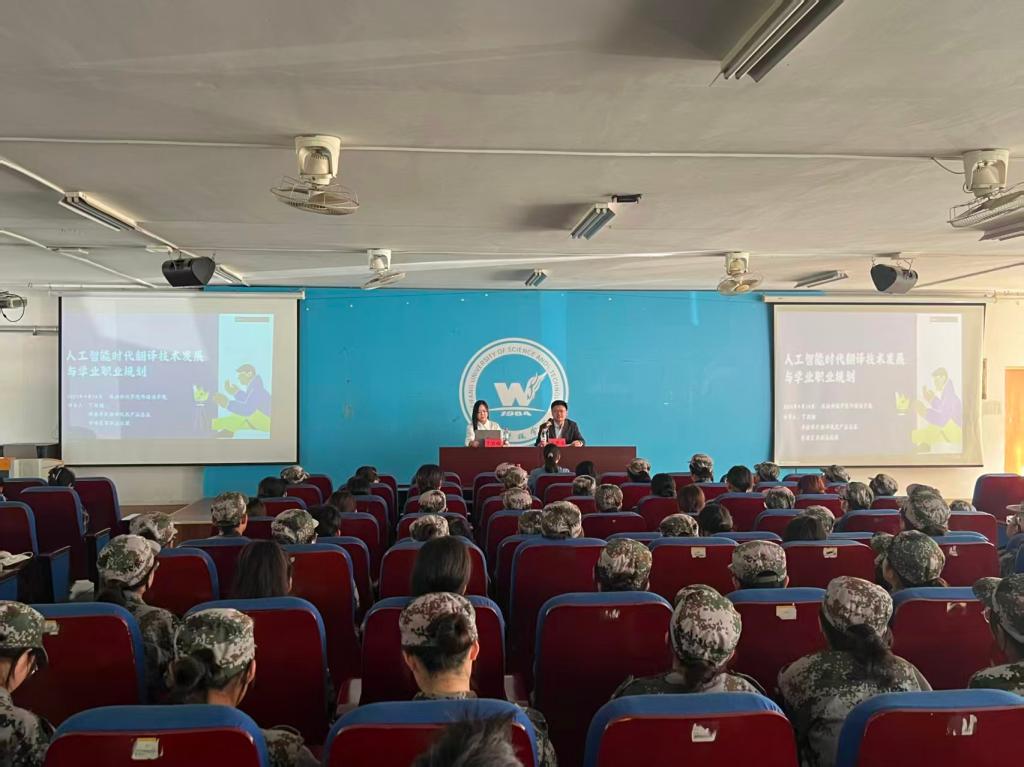 9月24日下午,译国译民集团山东分公司高校部总监陈淑玲一行受邀来到suncitygroup太阳新城,开展以“人工智能时代翻译技术发展与学业职业规划”为主题的分享交流活动,suncitygroup太阳新城党总支书记张丽、院系干部及130多名学生参加了本次活动。
