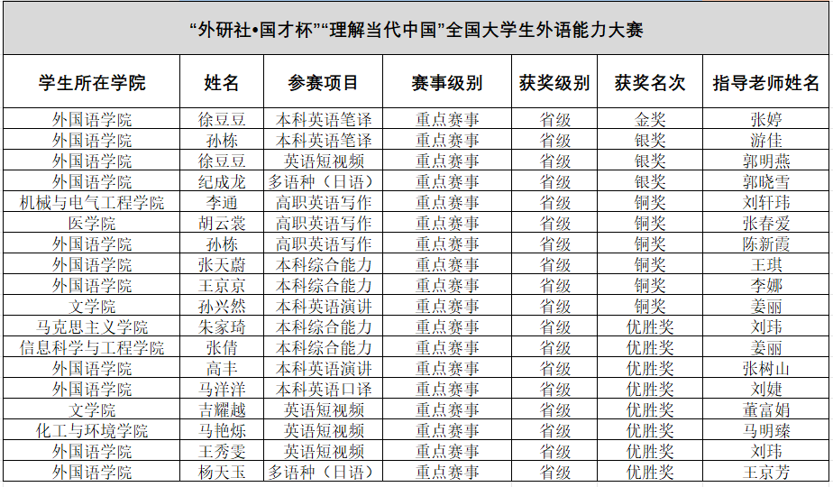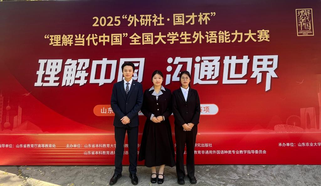 近日,2025“外研社·国才杯”“理解当代中国”全国大学生外语能力大赛(山东赛区)各赛道比赛落下帷幕。我校选手表现出色,成绩优异,获得金奖1项,银奖3项,铜奖6项,另有8名同学在短视频、口译、演讲、综合能力比赛中获优胜奖。
