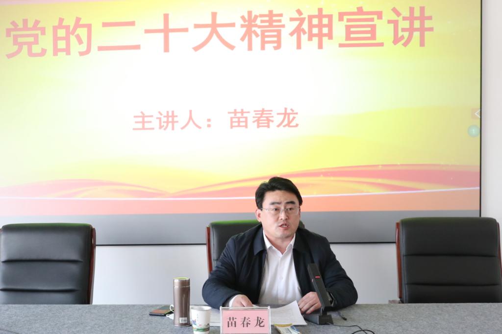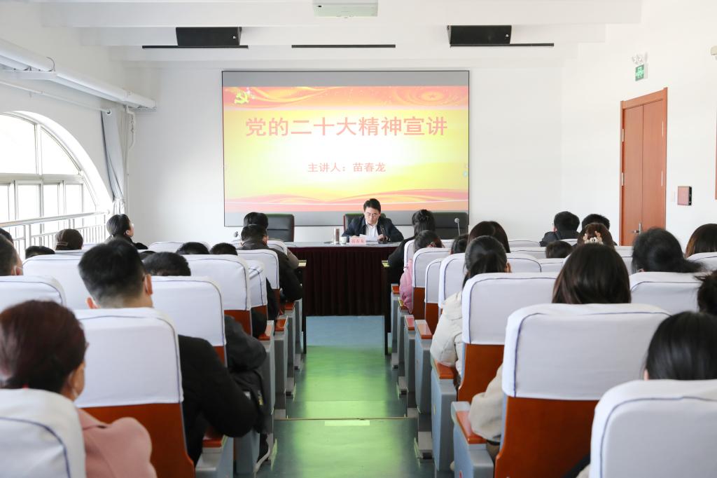 为深入学习领会党的二十大精神,suncitygroup太阳新城党支部、机关二党支部于3月1日在办公楼六楼会议室举行了党的二十大精神宣讲,学校党委副书记苗春龙作了宣讲报告。