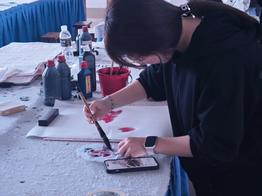 绘画创作区同步展开主题创作,学生以国画、水彩等形式再现包拯拒礼、于谦两袖清风等历史典故。国画组运用莲花等传统意象隐喻廉洁品格,让廉政理念转化为可视化的艺术语言。