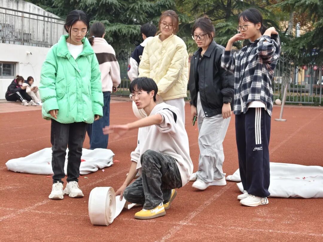 在消防运动会环节,三院师生热情参与,通过精心设计的竞赛项目将消防技能与团队协作深度融合。运动会设置了盛水接力、灭火器折返跑、消防水带连接及灭火自救演练四大项目。参赛队员在盛水接力中默契配合,亲身体验"水灭火"原理;在灭火器折返跑中感受消防工作的艰辛;在水带连接环节展现团队协作能力;在灭火自救演练中规范执行疏散动作。现场气氛热烈,竞技性与教育性相得益彰。