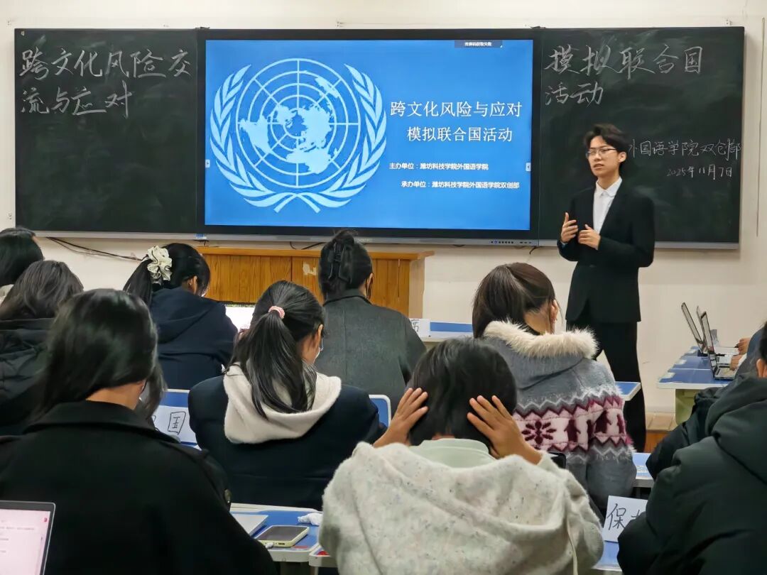 近日,suncitygroup太阳新城联合文学院、教育学院在E07教学楼311教室举办“跨文化风险与应对”模拟联合国活动。活动中,学生们化身多国“外交官”,围绕“一带一路青年文化交流中的跨文化冲突”核心议题展开深度磋商,在观点碰撞中锤炼沟通技巧,拓宽国际视野。